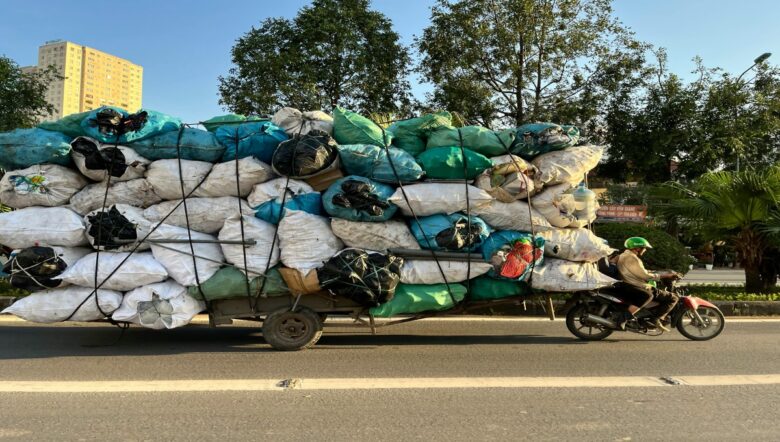 シートバッグやサイドバッグを使えば、体への負担がなく快適に走れます。