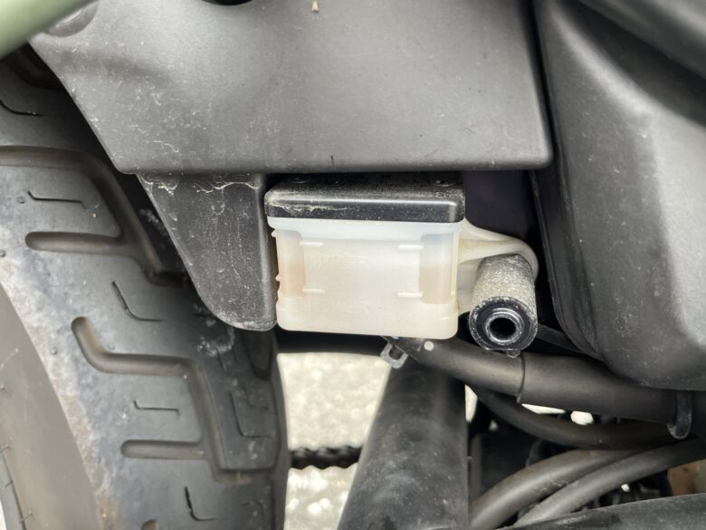 リアブレーキの交換方法もフロントブレーキと方法は変わりませんので、リザーブタンクの位置などかんたんに紹介します。