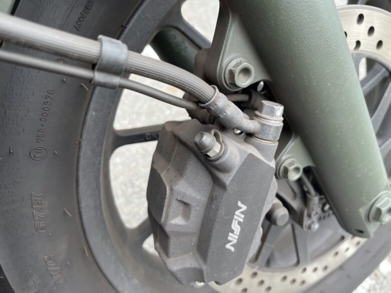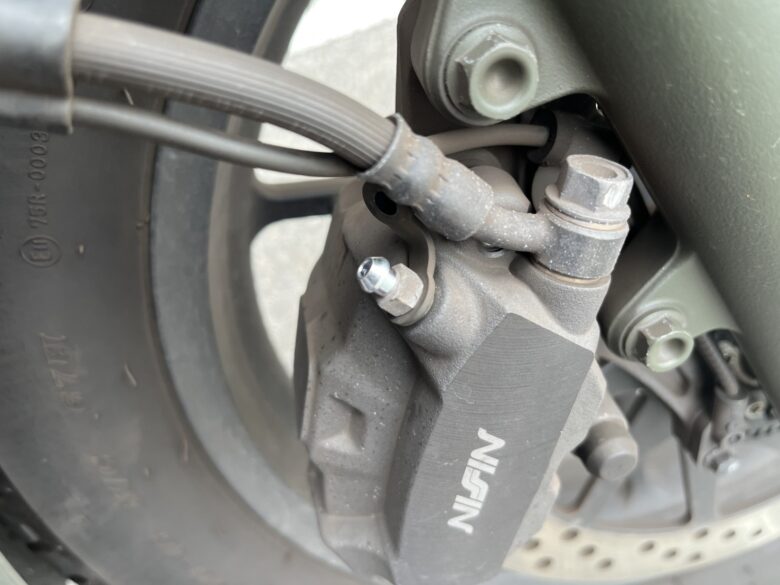 エンジンはかけずにバイクを押してブレーキがしっかり掛かるか数回試し、それからエンジンをかけて低速でブレーキをかけてみてブレーキが効いたら路上で試運転します。
