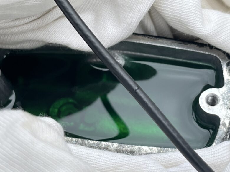 覗き窓から見てこの線より上にブレーキフルードが入っていなければなりません。