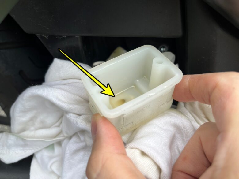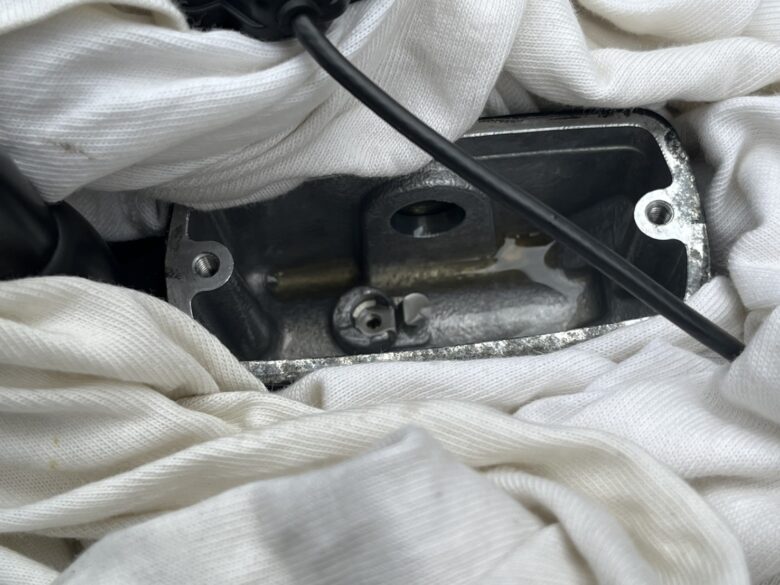 この中にブレーキフルードが入っているので、まずはこの中を空にします。