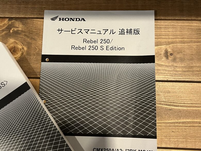 最初に作られたモデルからマイナーチェンジされて、ヘッドライト内やシート裏の配線の取り回しなどが変わりました。そういった変更箇所は追補版に載っているため、自分の持っているバイクによってはプラスで追補版を購入すると安心です。