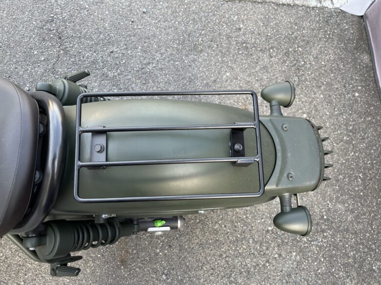 純正のタンデムシートを外して、前後のボルト穴にボルトを絞めれば取り付けられます。