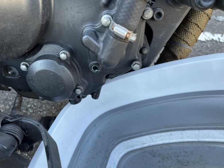 ここのボルトを外したらクーラントがドバッと出てくるかと思いきや出てきません。