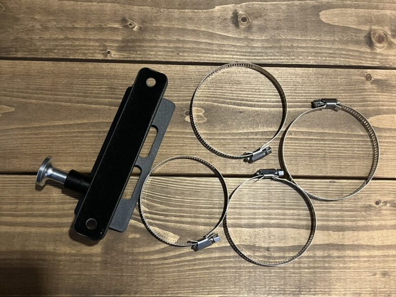 今回使用した携行缶ステーは「消火器マウント クイックリリース」という商品名のノーブランド品です。